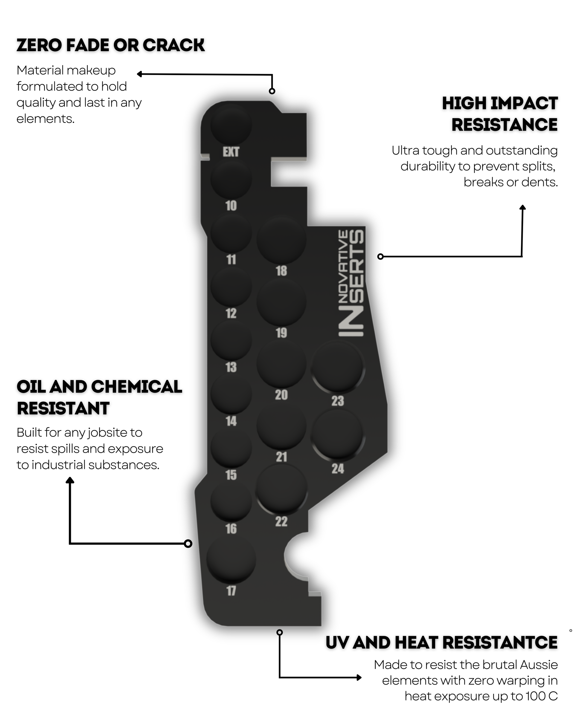 - Two-piece interlocking design utilising every millimeter of your Packout™ – zero wasted space - maximum efficiency.